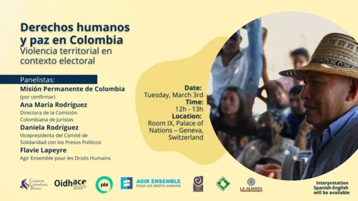 In samenwerking met de Colombian Commission of Jurists (CCJ) en de International Office for Human Rights Action Colombia (OIHDACO) organiseert PBI een nevenevenement bij de Verenigde Naties over de gevolgen van het toegenomen territoriale geweld in Colombia tijdens de verkiezingsperiode, dat vooral mensenrechtenverdedigers, sociale leiders en gemeenschappen treft.